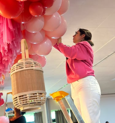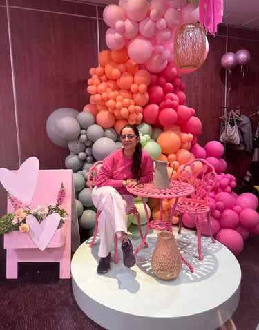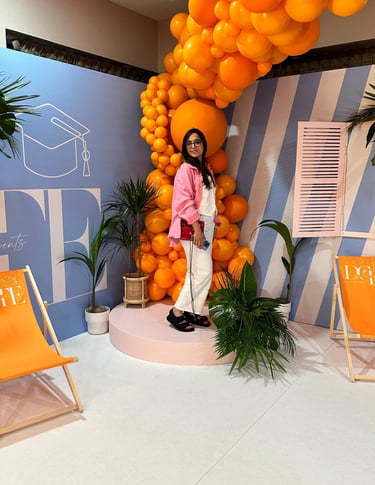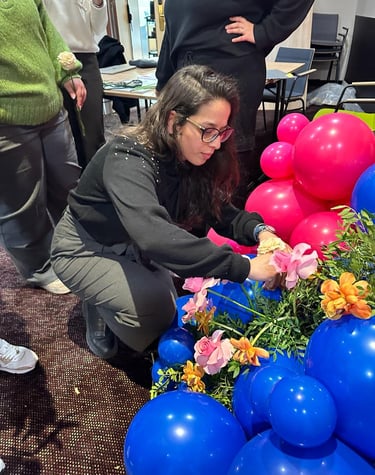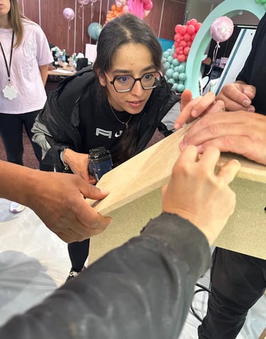 Cette expérience m’a permis d’affiner mon expertise, d’apprendre les subtilités du design évènementiel et d’acquérir une maîtrise pointue de la création de décors sur mesure, notamment à travers des ateliers floraux, des cours de menuiserie, où j’ai appris à concevoir et fabriquer moi-même des backdrops et des lettres lumineuses, ainsi que des ateliers ballon pour maîtriser l'art des décorations XXL déstructurées.