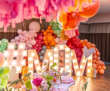 Confiez nous la réalisation de vos photocalls et backdrops personnalisés : intégrant votre prénom, votre âge, une citation inspirante, des paillettes, des fleurs ou des ballons. Seule l'étendue de votre imagination fixe les limites de notre créativité.